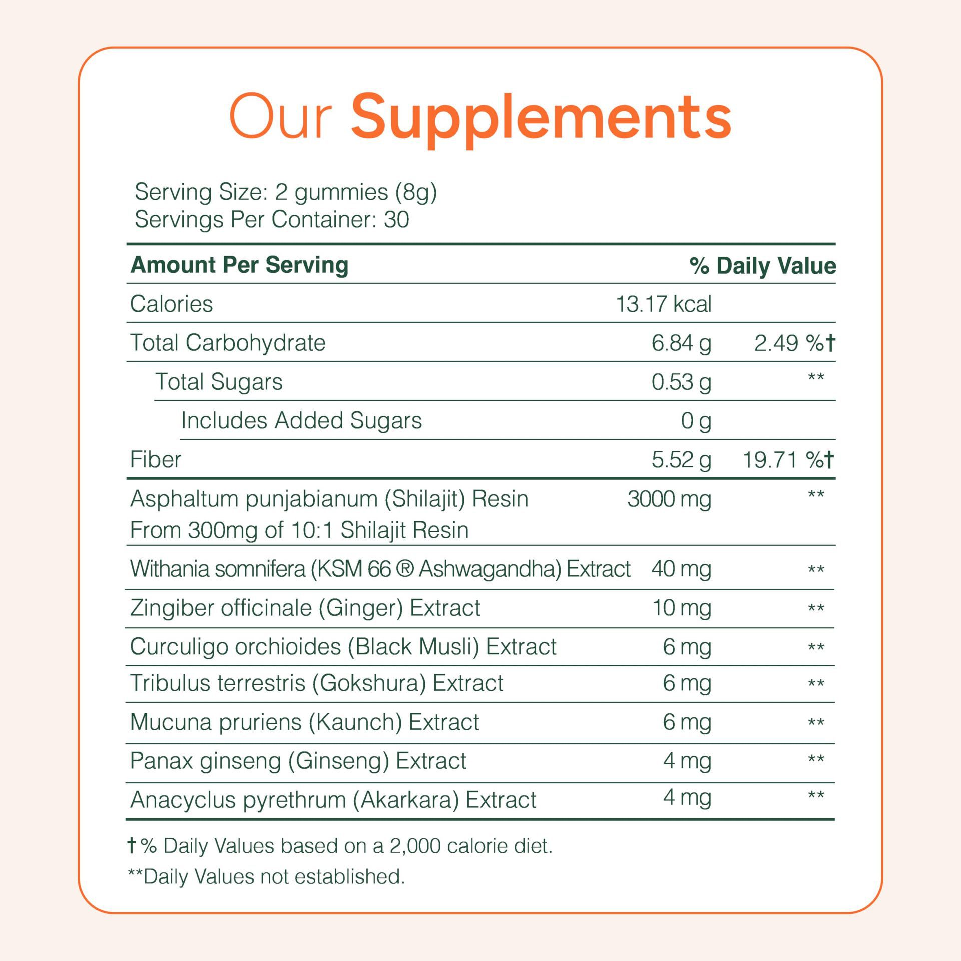 Make Premium Shilajit Gummies part of your daily regimen to support energy, stamina and recovery in a convenient chewable. Each bottle provides a 60-count supply with a two-year shelf life when stored in a cool place — get started today.