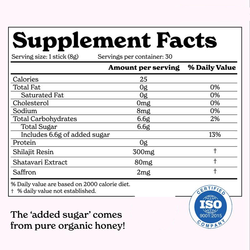 Formulated with traditional Ayurvedic ingredients, these honey sticks are a convenient complement to women's wellness routines. Many users find shilajit supports mood, hormone balance, and monthly-cycle comfort as part of a holistic approach.